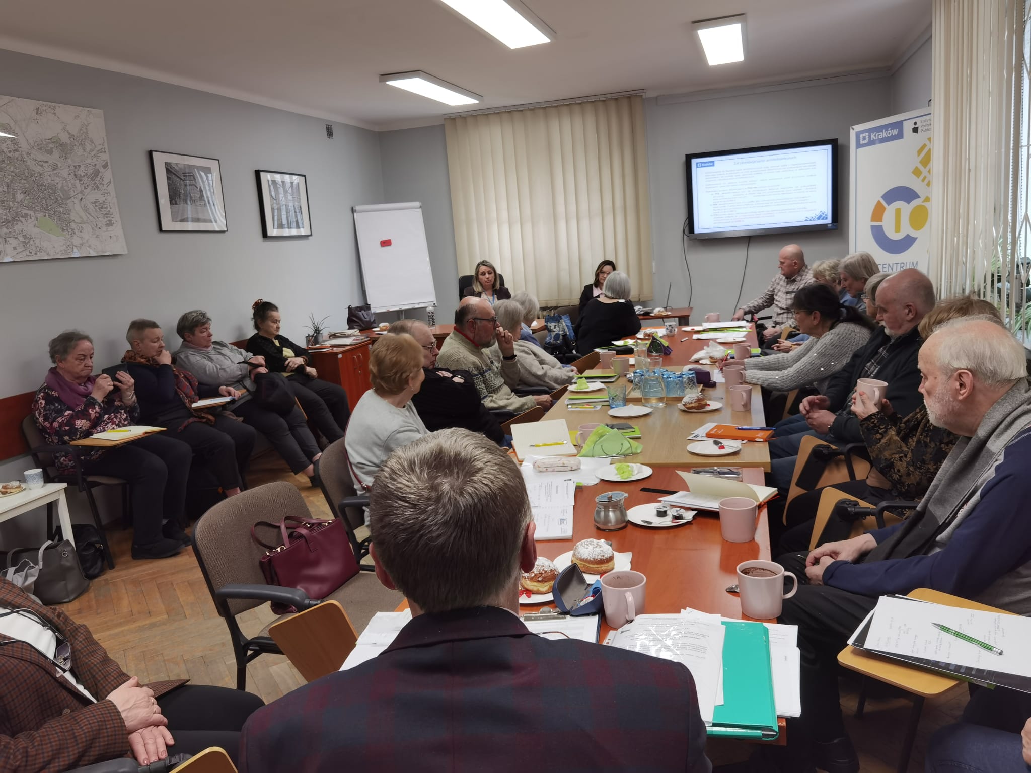 Na czwartkowe zebranie przy kawie i pączku (zaległy „Tłusty Czwartek”) zaprosiliśmy Przedstawicieli z Miejskiego Ośrodka Pomocy Społecznej MOPS w Krakowie.