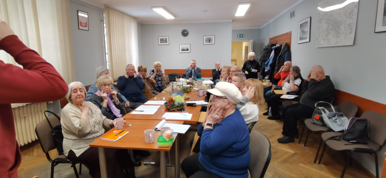 Na spotkaniu w dniu 15 stycznia, 2026 gościliśmy Pana Krzysztofa Świątka – studenta V roku fizjoterapii Śląskiego Uniwersytetu Medycznego w Katowicach. Tematem rehabilitacji były ćwiczenia mimiczne zapobiegające hipomimii czyli twarzy nie wyrażającej emocji. Rozpoczęliśmy je masażem twarzy celem rozluźnienia mięśni i poprawy krążenia.